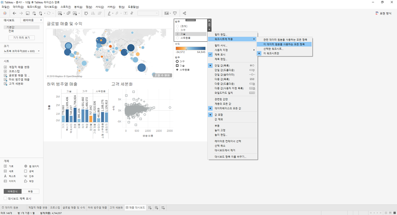 [Tableau] 06 Tableau tutorial 대시보드 만들기 본문