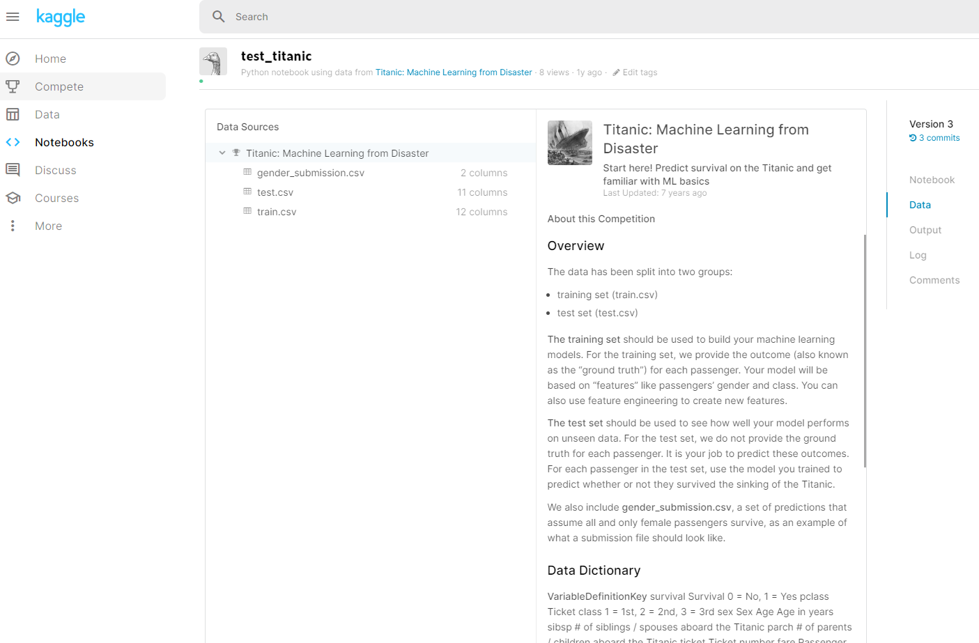 - 캐글(링크)에서 titanic dataset(train.csv) 다운로드
