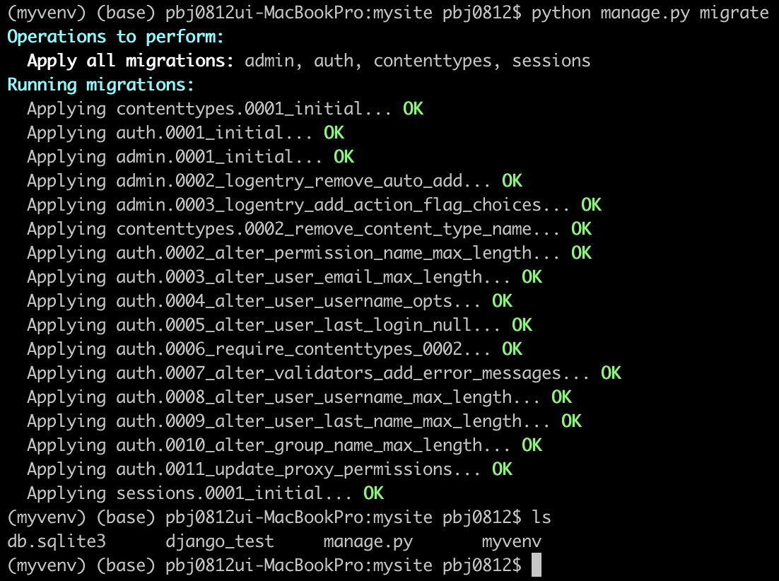 - db.sqlite3 생성
