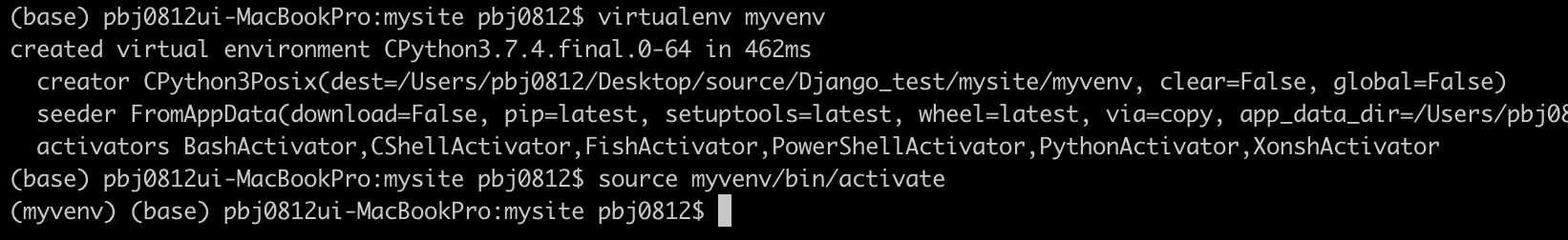 - 완료시 앞에 (myvenv)가 붙음