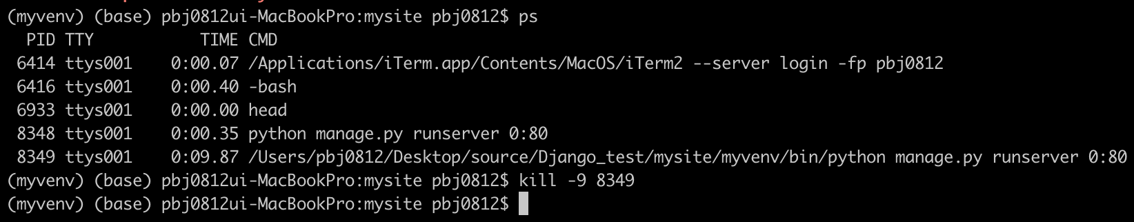 - 해당 PID 확인 및 kill -9 해당PID 입력