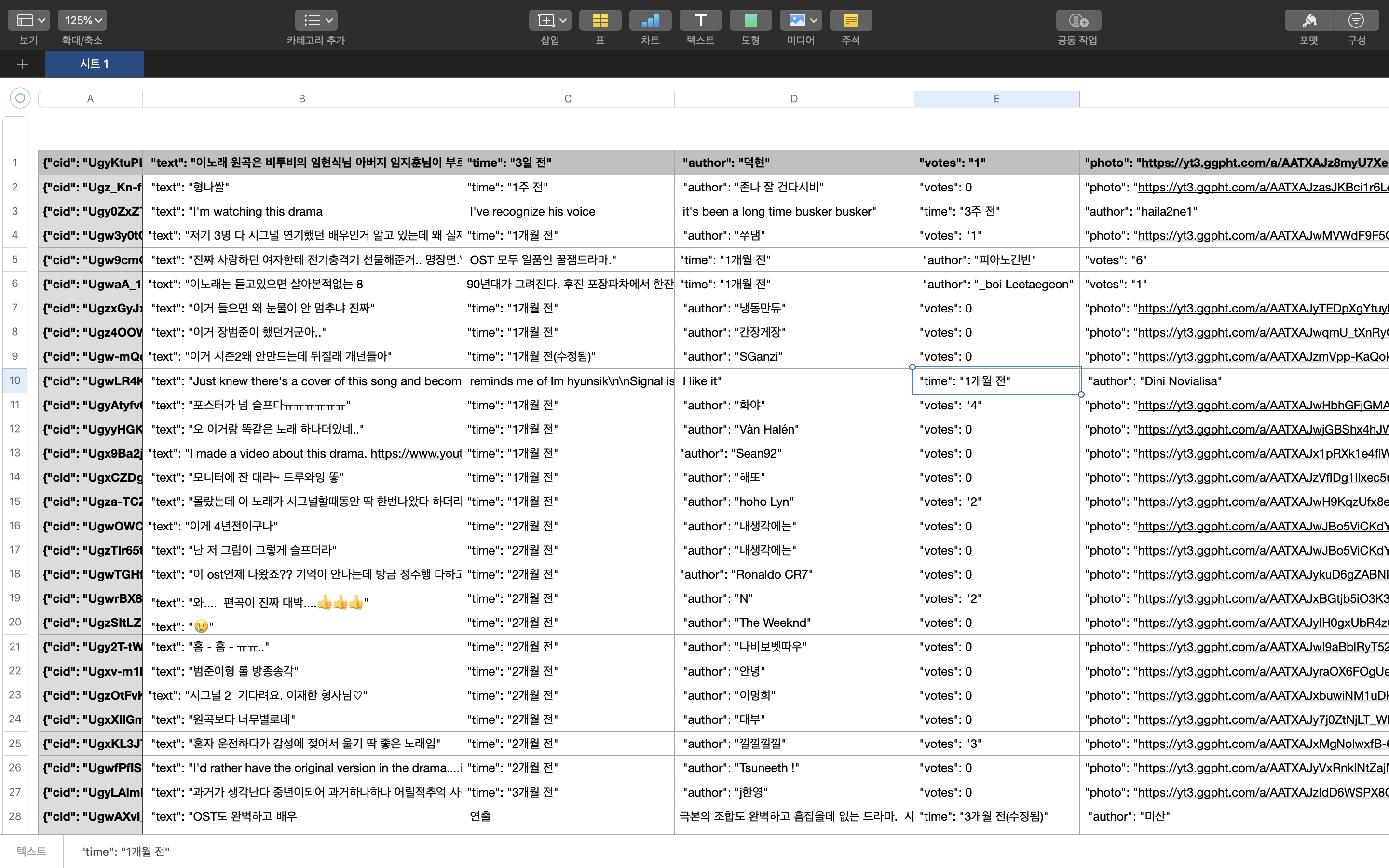 - egbertbouman님의 소스를 사용하여 유투브 댓글 크롤링