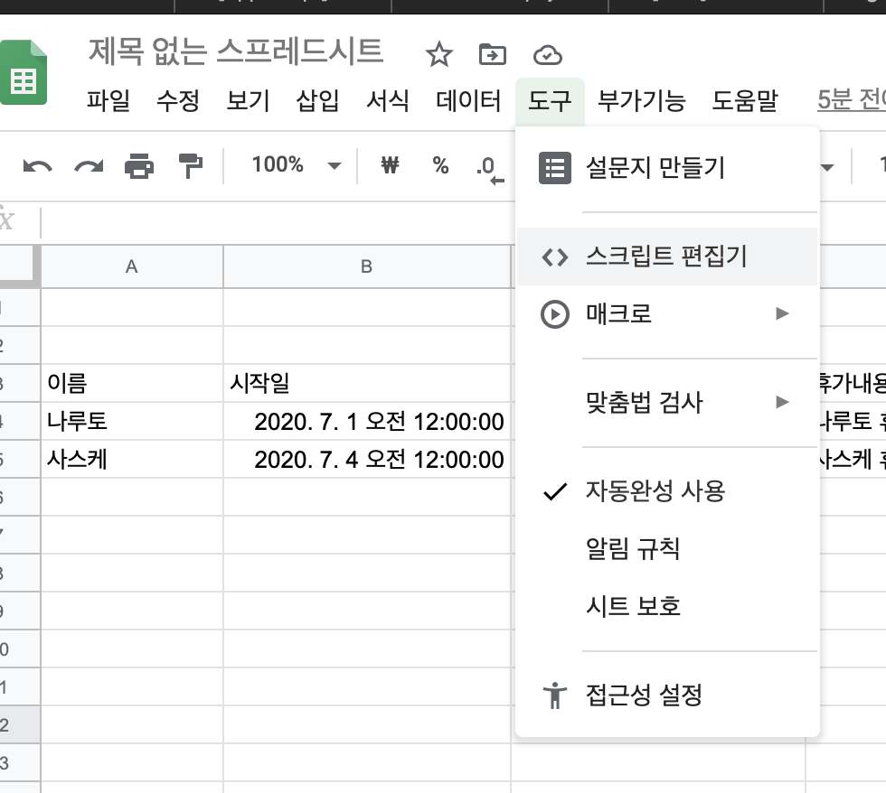 [자동화] Google SpreadSheet, Calendar 연동을 통한 일정 관리 본문