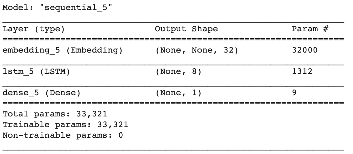 model_lstm.compile(optimizer = 'adam', loss = 'binary_crossentropy', metrics = ['accuracy'])