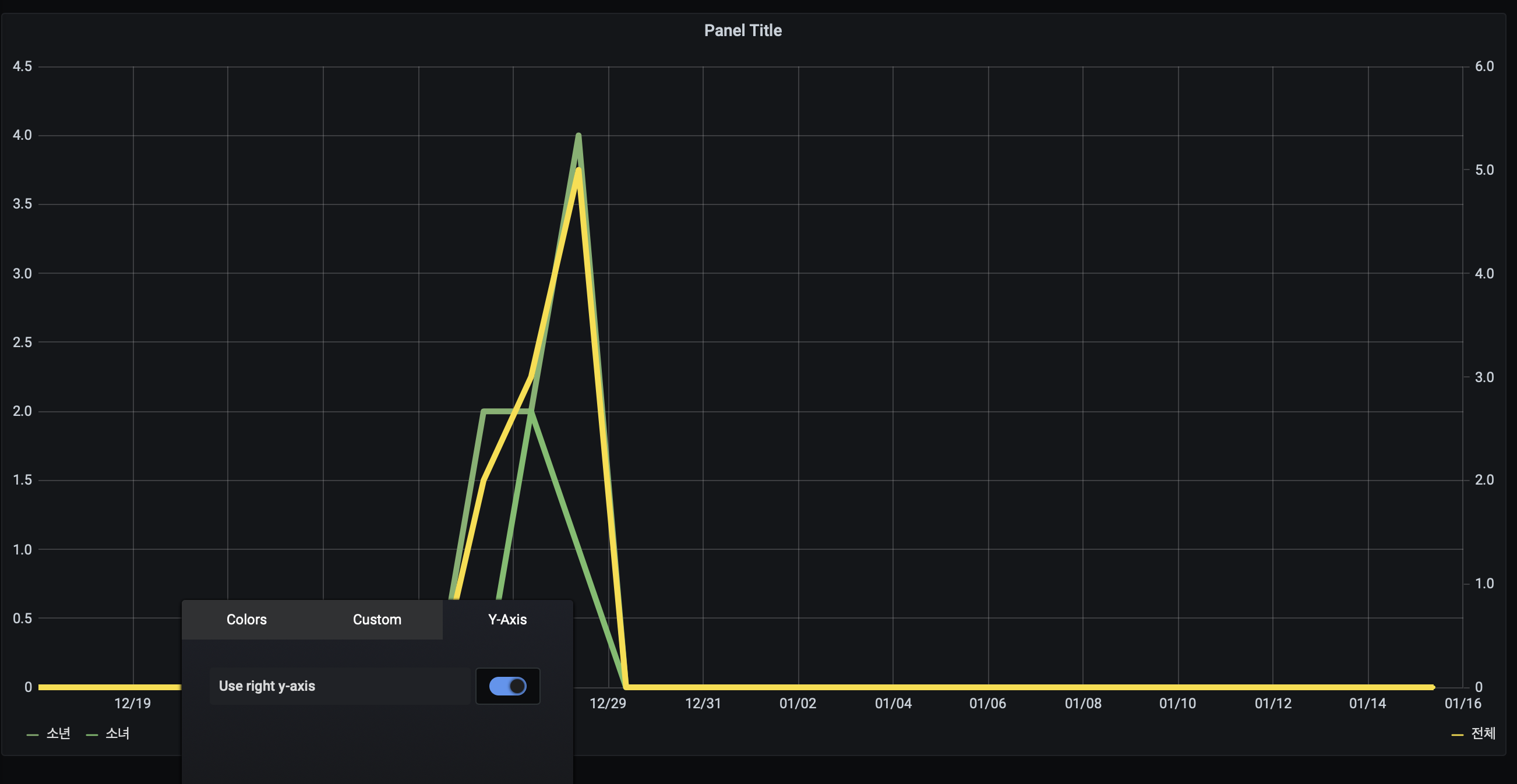 - 탭의 Y Axis 클릭시 plotyy의 형태로 나타남