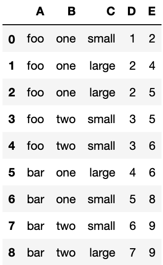 df = pd.DataFrame({"A": ["foo", "foo", "foo", "foo", "foo", "bar", "bar", "bar", "bar"],
