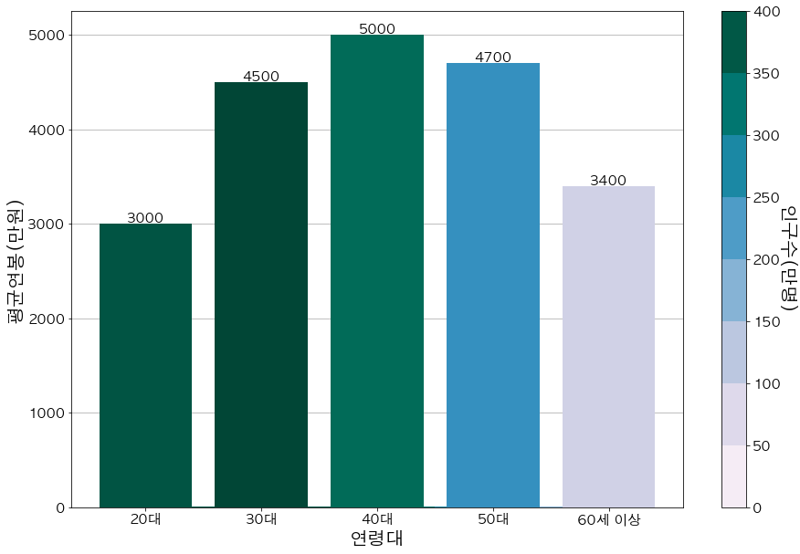- 연령 별 연봉 그래프 그리기