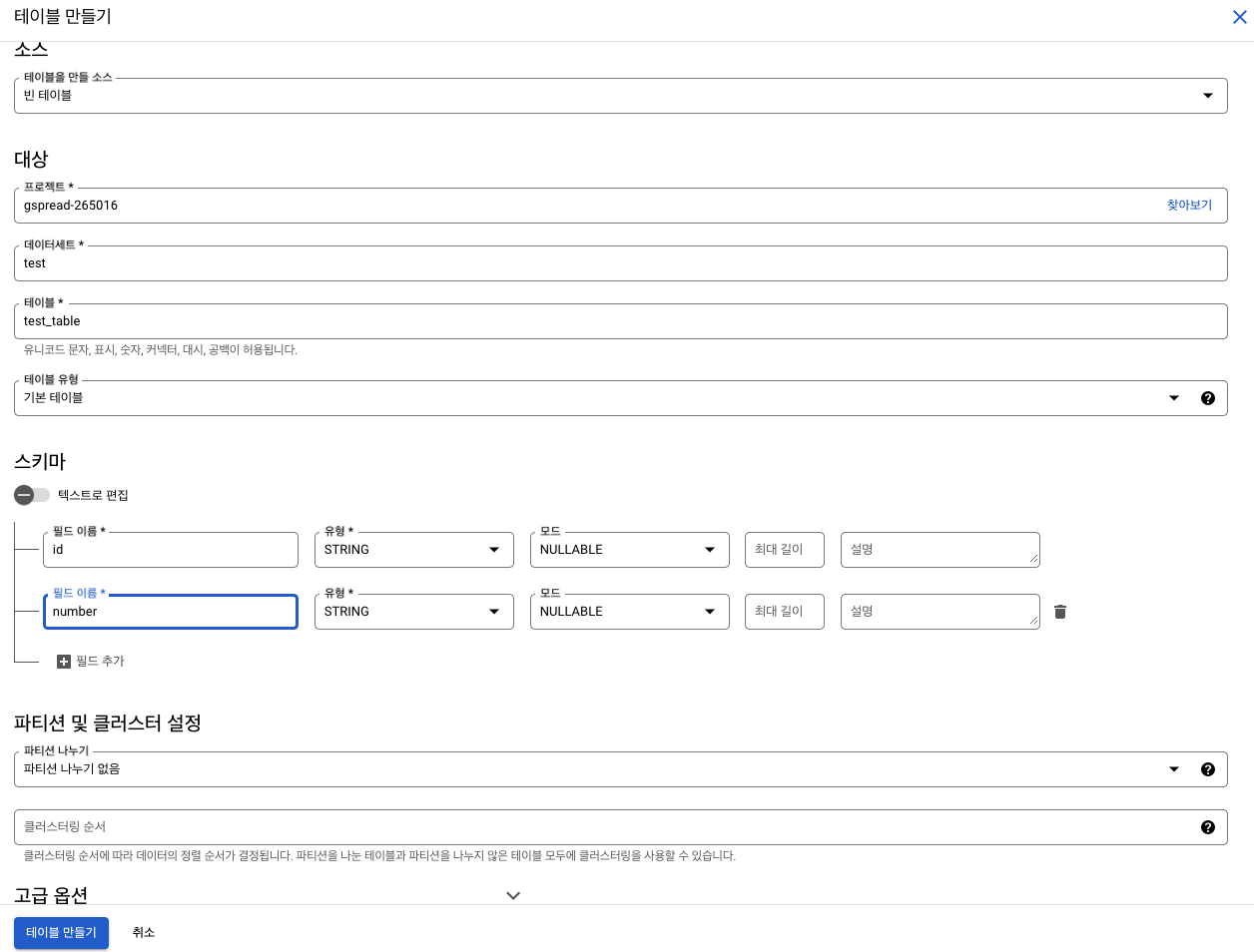 [빅쿼리] 콘솔에서 테이블 만들기 본문