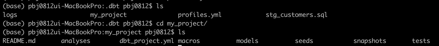 - 아래 작업을 해야 profiles.yml 파일이 생성됨.