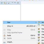1. 옆의 창에서 오른쪽 버튼 -> New -> JaVa Project 클릭 -> 이름 짓기* 이름 규칙은 첫글자 영문자 이후 숫자 및 $ _ 만 가능하며 웬만해선 단어의 첫글자는 영어로 적고 $ _ 는 나중에 헷갈릴 수 있으니 쓰지 않는 것이 좋다. 2. Project를 생성하면 폴더 두 개가 생성되는데, 아래의 src 폴더에서 오른쪽 버튼 -> New -> Package -> 이름짓기 3. 생성된 Package -> 오른쪽 클릭 -> New -> class 4. 이름 짓고 아래의 public~ 클릭하고 넘긴다. 5. 만들어진 화면* 한줄짜리 주석은 // 를 쓰고 여러줄은 앞 뒤에 /*, */를 넣는다.커서 기준 한 줄 지우기는 ctrl + d 6. sysout 을 입력하고 ctrl + space ba..